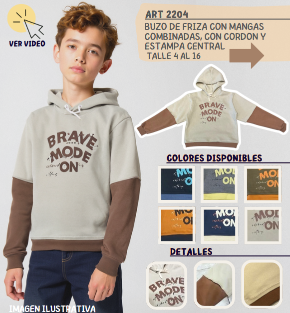 Buzo de frisa «Brave Mode On» con mangas combinadas