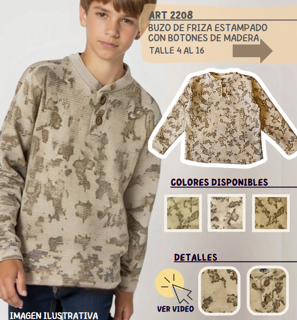 “El Buzo de frisa estampado con botones de madera es de muy buena calidad precio calidad excelente.”