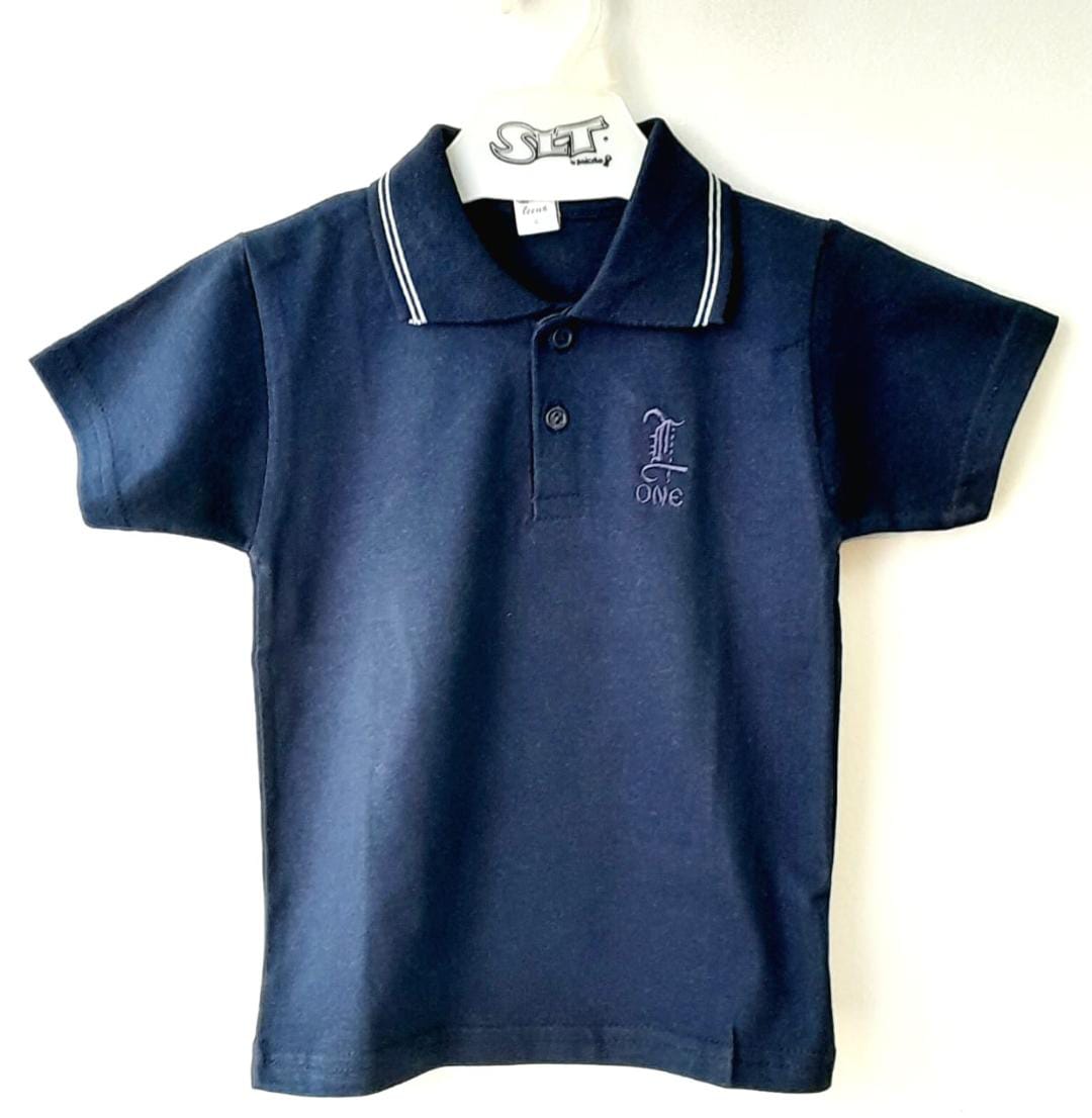 Chomba algodón liso con cuello tejido y bordado. Talles: 4/6/8/10/12/14/16