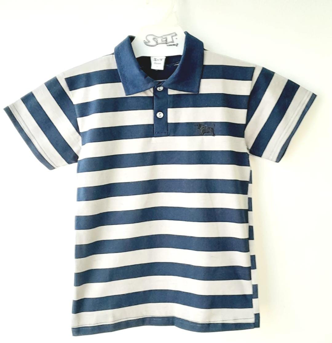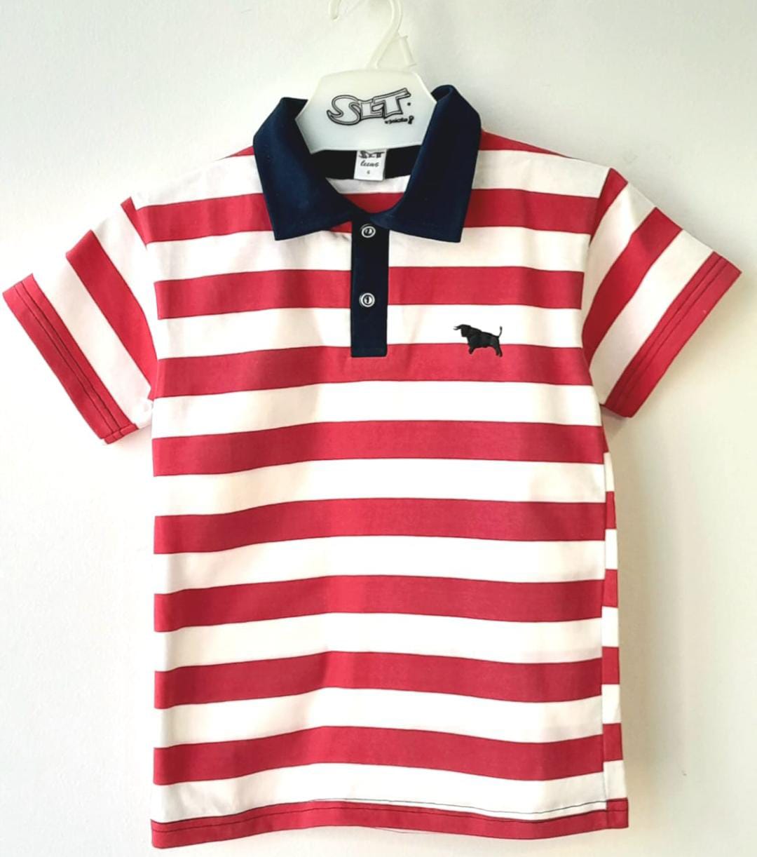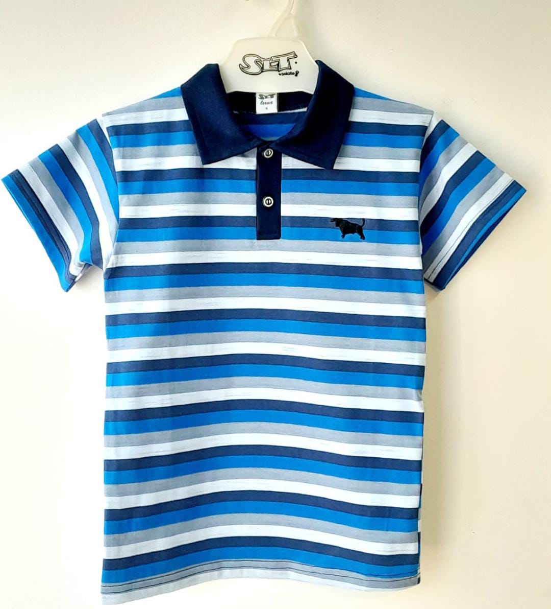 Chomba algodón rayado con bordado y cuello tejido. Talles: 4/6/8/10/12/14/16