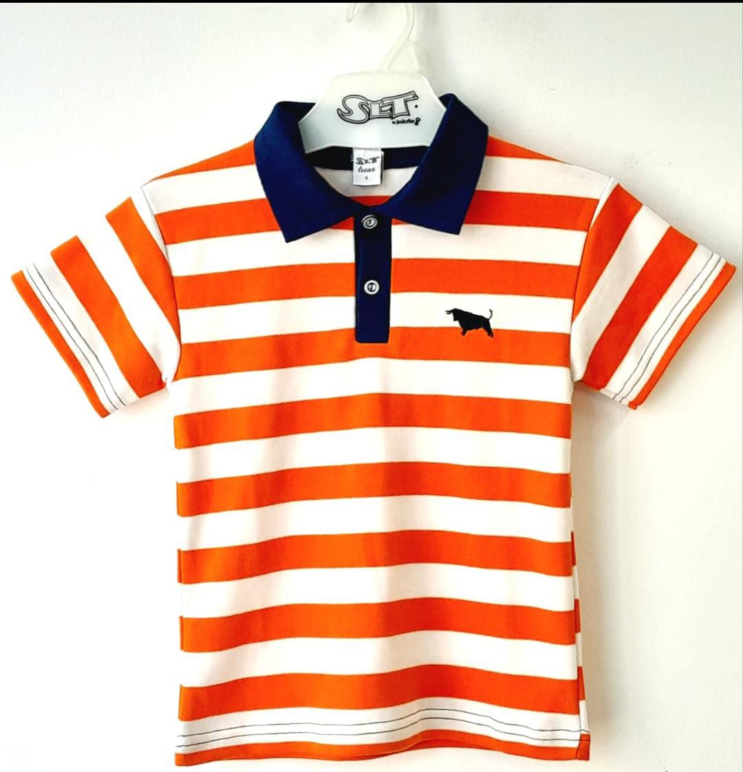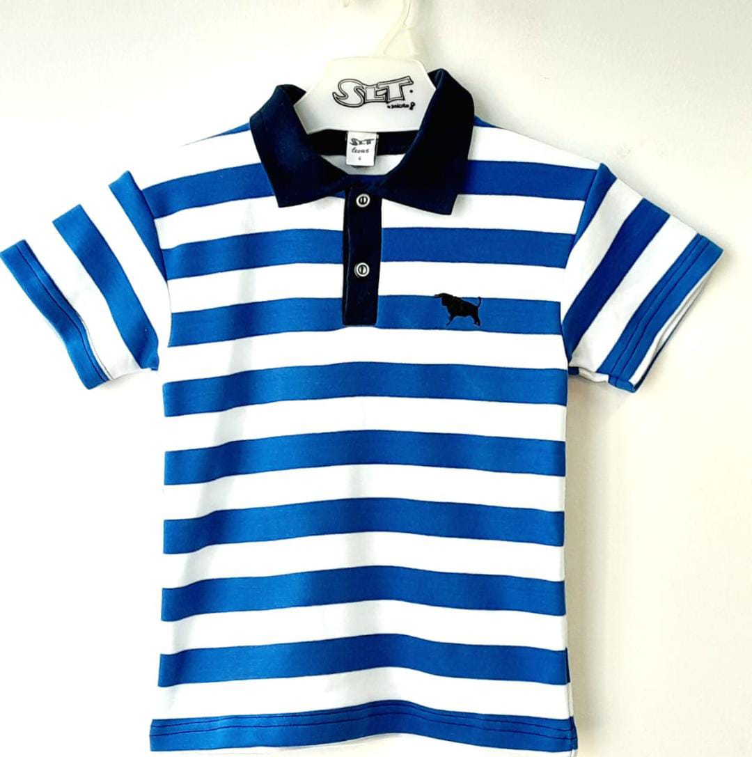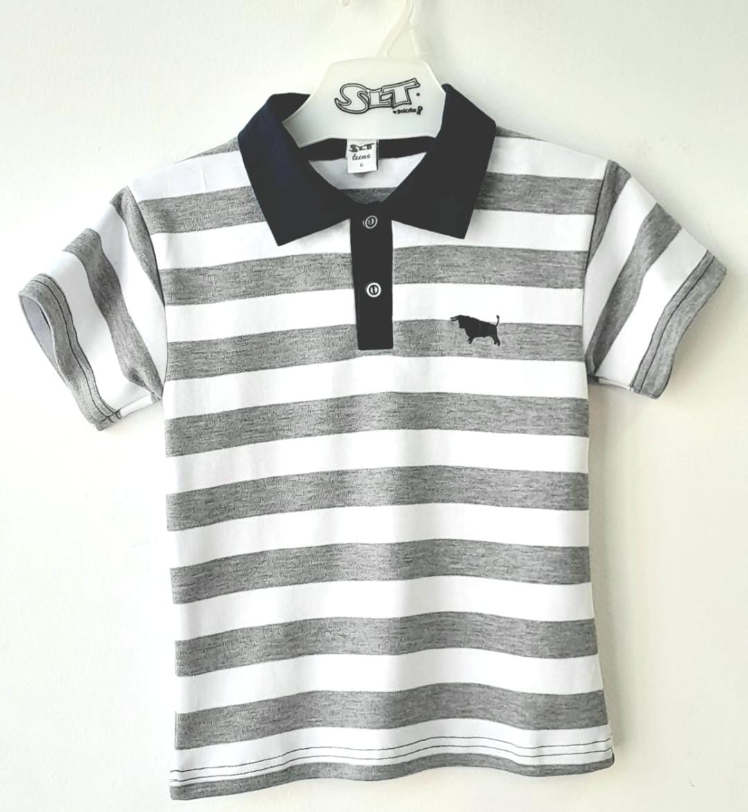 Chomba algodón rayado con bordado y cuello tejido. Talles: 4/6/8/10/12/14/16