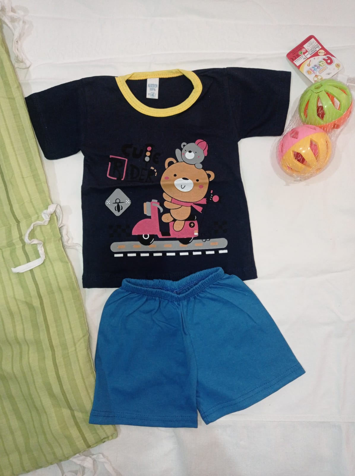 Conjunto Ositos 2 piezas azul con remera + short talle 4