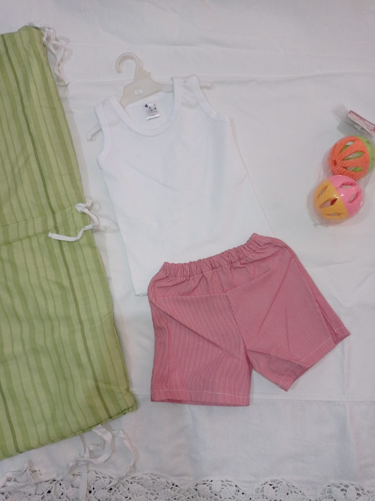 Conjunto Sport blanco 2 piezas con musculosa de algodón y short de gabardina a rayas talle 3