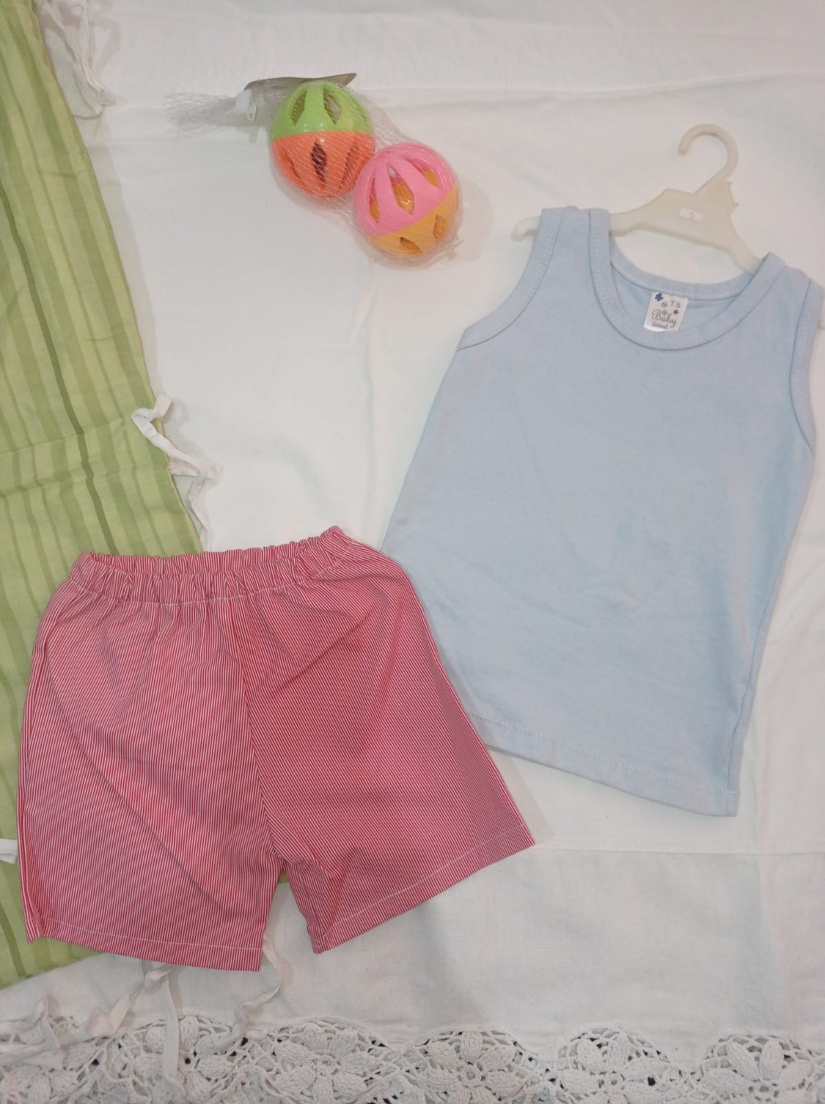 Conjunto Sport celeste 2 piezas con musculosa de algodón y short de gabardina a rayas talle 5