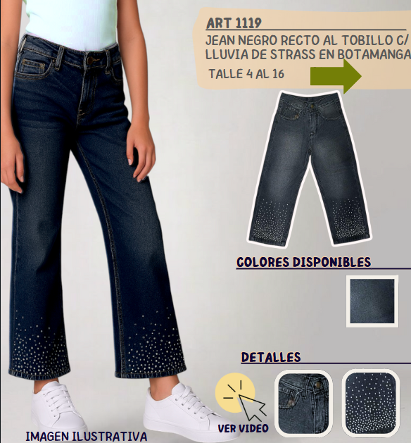 “La calidad de Jean negro recto con "Lluvia de Strass" es increíble, perfecto muy recomendable¡.”