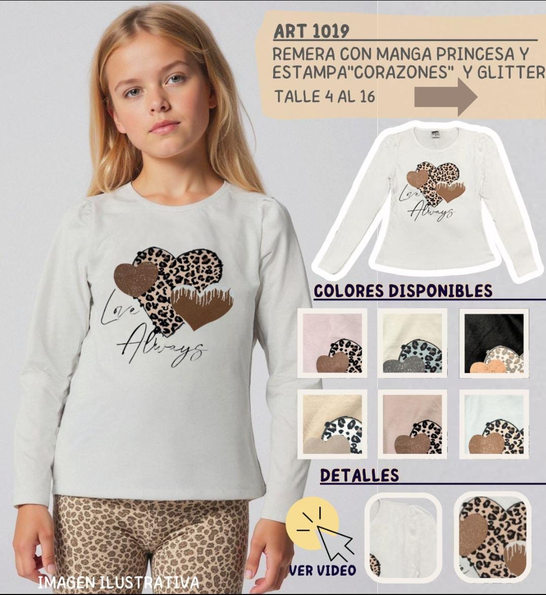 “Muy conforme con Remera manga princesa "Corazones y Glitter". Buen precio y presentación increible muy bueno¡.”